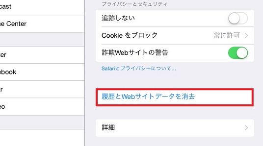 「履歴とWebサイトデータを消去」を選択、履歴の消去をしてください