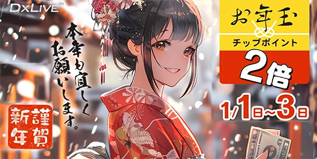 お正月の三が日、女の子へ贈るチップの同額ポイントをDXLIVEからもプレゼント🎁 致します 。