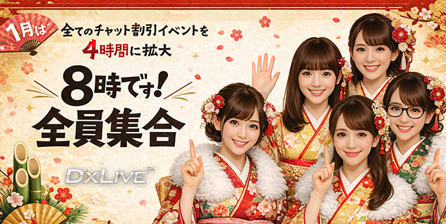 DXLIVEは、2026年のスタートから全チャット割引イベントを毎晩たっぷり4時間でお届け!