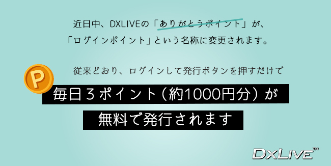 DXLIVEの、毎日発行できる 「ありがとうポイント」 が、近日中に 「ログインポイント」 という名称に変更となります。